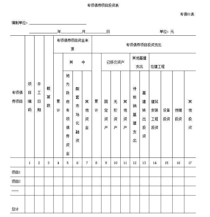2.项目单位应当在本规定施行之日,编制“专项债券项目投资表”和“专项债券资金还款情况表”。